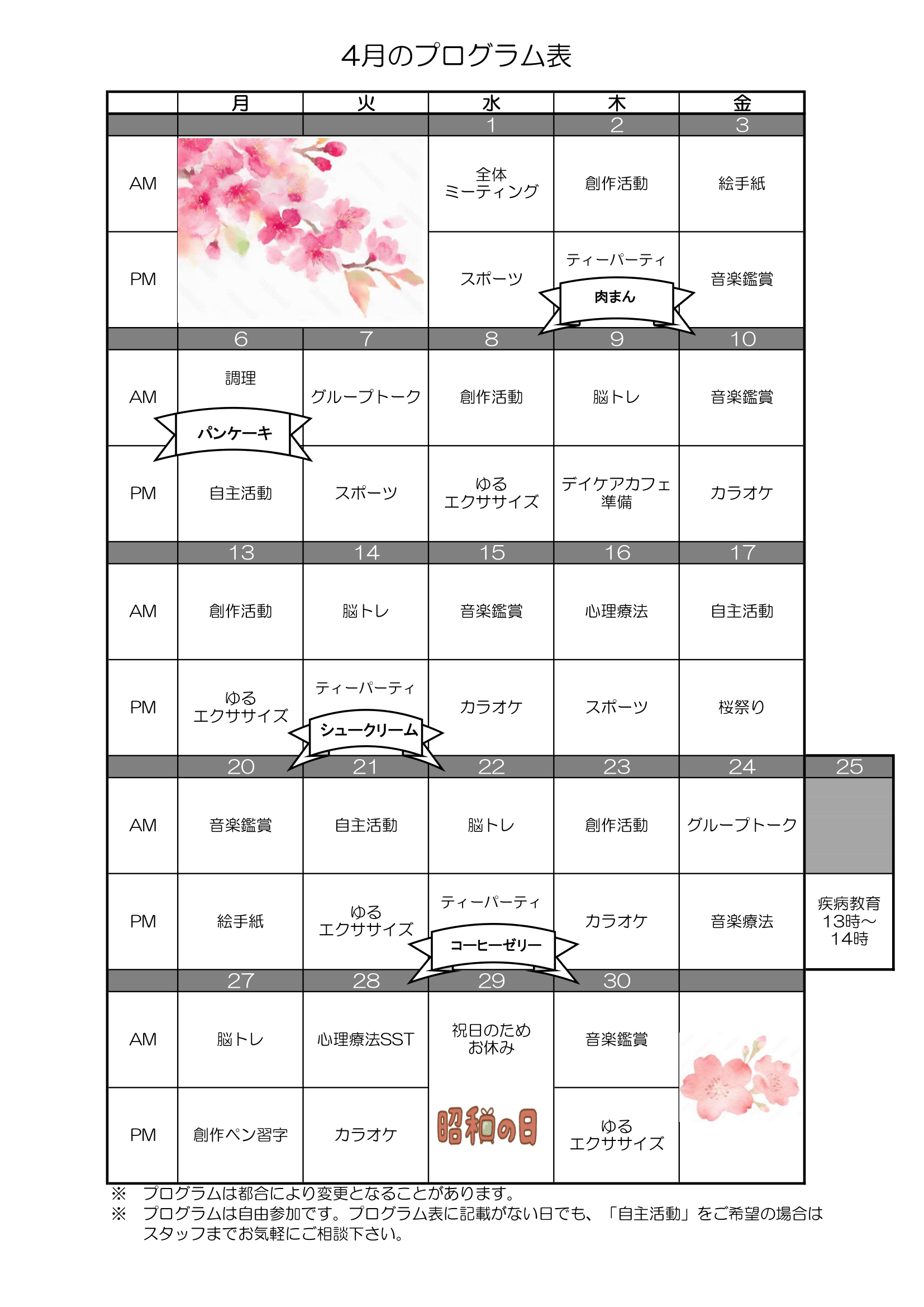 先月のプログラム表
